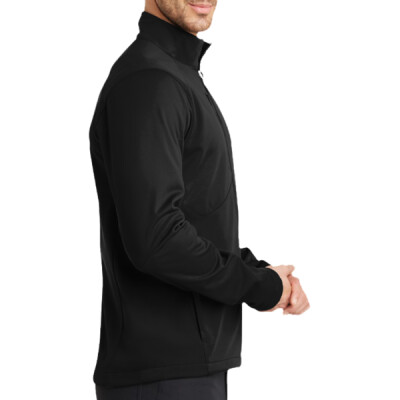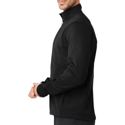 • 100% poly stretch shell bonded to textured grid fleece with a laminated film insert for wind and water resistance