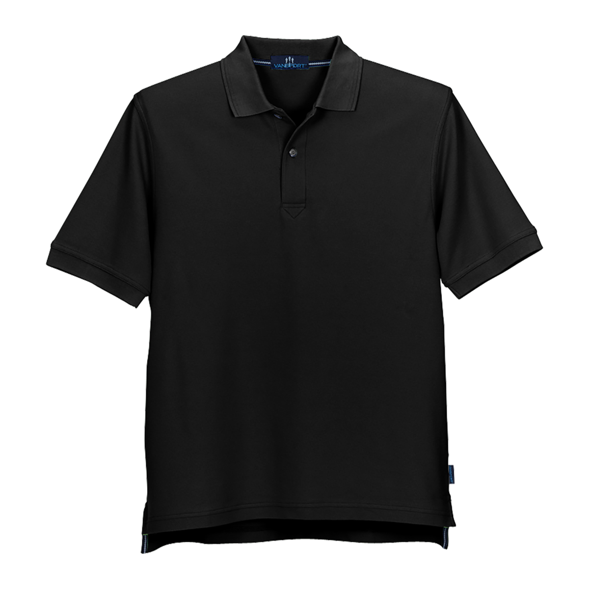 Get the comfort of cotton and moisture-wicking technology in a heavier weight golf polo. 65% cotton/35% polyester, 6 oz. Vansport? moisture management double-tuck pique body, welt-striped collar, two-button V-box placket, smoke polished pearl buttons with pewter center, rib-knit cuffs, locker patch, double-needle top-stitching, striped twill tape in neck and vents, dropped tail, replacement button. Imported. XS-5XL