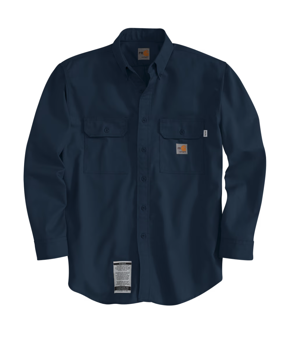 • Carhartt FR label sewn on left pocket; NFPA 2112/CAT 2 label sewn on sleeve placket
