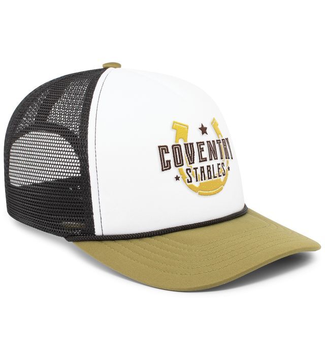 * 100% polyester * Trucker mesh side and back panels * Foam front panel float insert * Slight curved visor * Contrast cording on select colors * Snapback adjustable