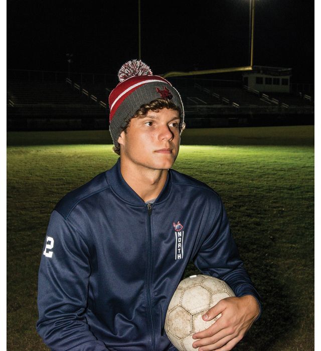* Two layers of 100% acrylic knit * Two reflective stripes * Two color pom pom accent with reflective yarns