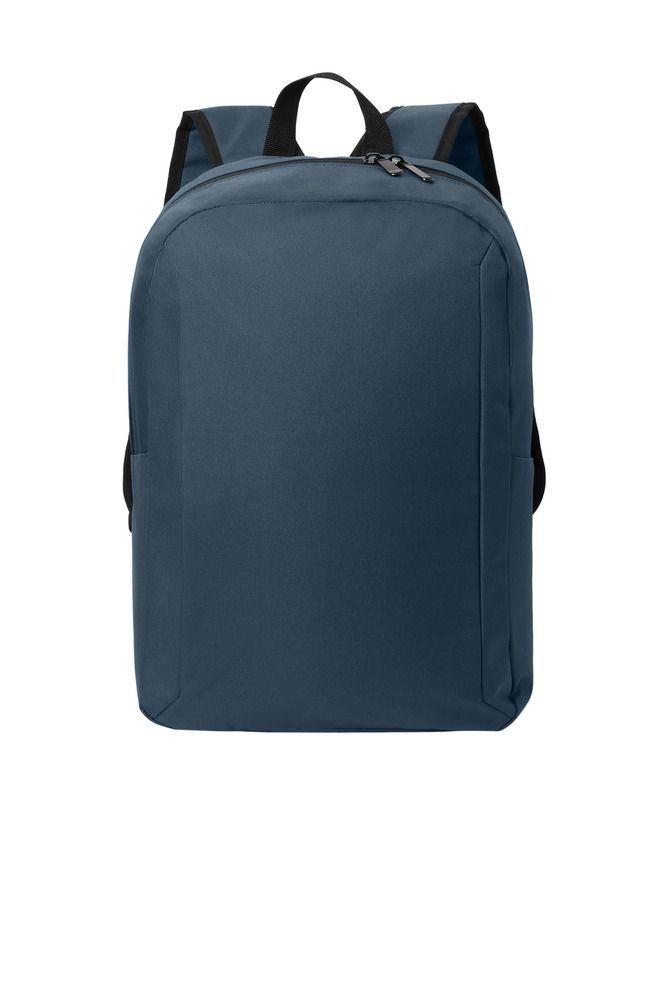 300D polyester twill with PVC backing Zippered main compartment Front zippered pocket Matte metal zipper pulls Adjustable shoulder straps Web carry handle Laptop sleeve dimensions: 11.8'h x 11.8'w; fits most 16' laptops Dimensions: 16.75'h x 12'w x 6'd Capacity: 1,282 cu. in./21 L Weight: 1.2 lbs./0.5 kg Note: Bags not intended for use by children 12 and under.