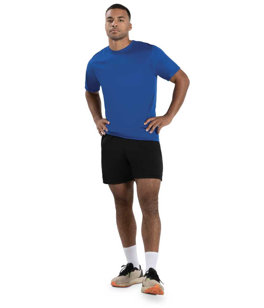 * Dry-Excel(tm) 100% polyester interlock smooth knit with color secure(r) technology that helps prevent dye migration * Wicks moisture * Tag-free label * 2-inch brushed back elastic waistband with inside drawcord * Side seam pockets * Side vents * 6-inch inseam
