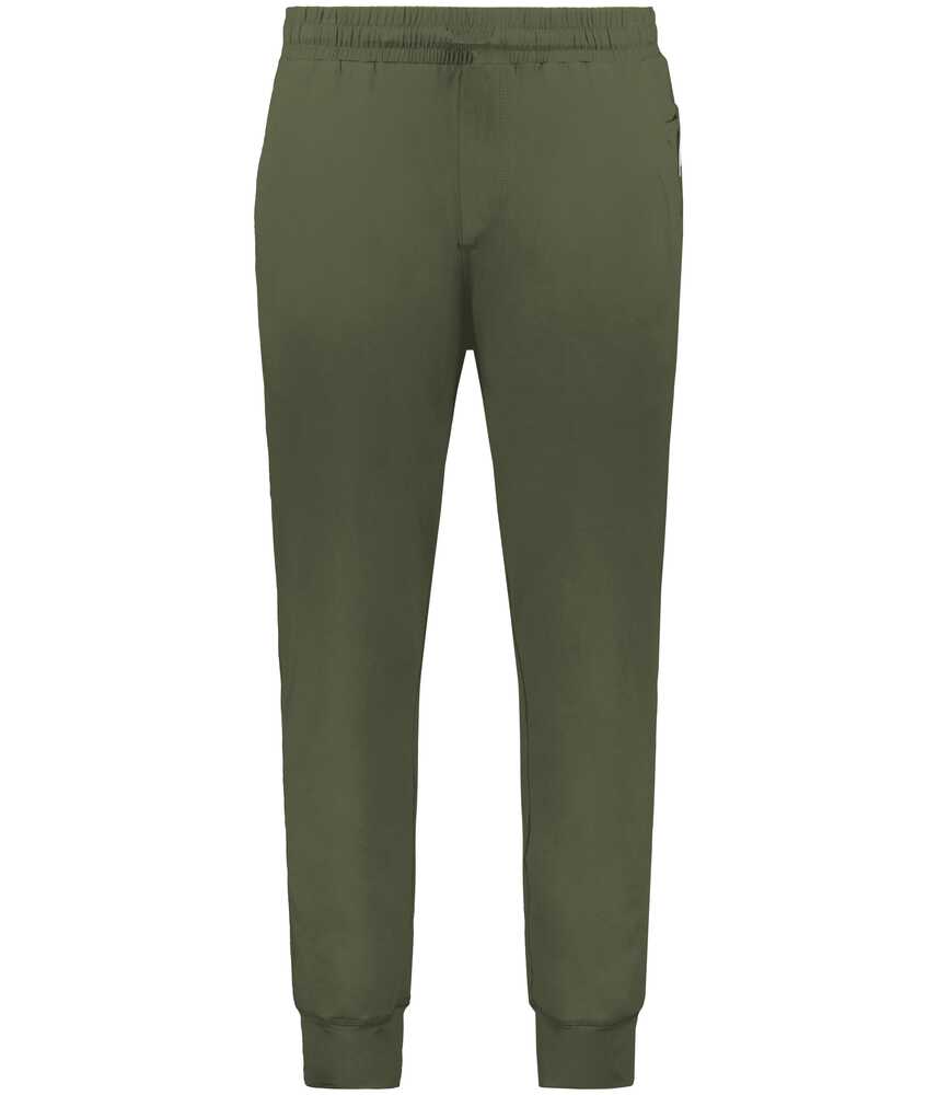 * Lightweight, soft-knit * Solids, 89% recycled polyester/11% spandex * Heathers, 45% recycled polyester/44% polyester/11% spandex * Wicks moisture * Tagless label * Covered elastic waistband * Faux fly * Front pockets with inner valuables pocket inside left pocket * Back pocket with zipper * Tapered leg