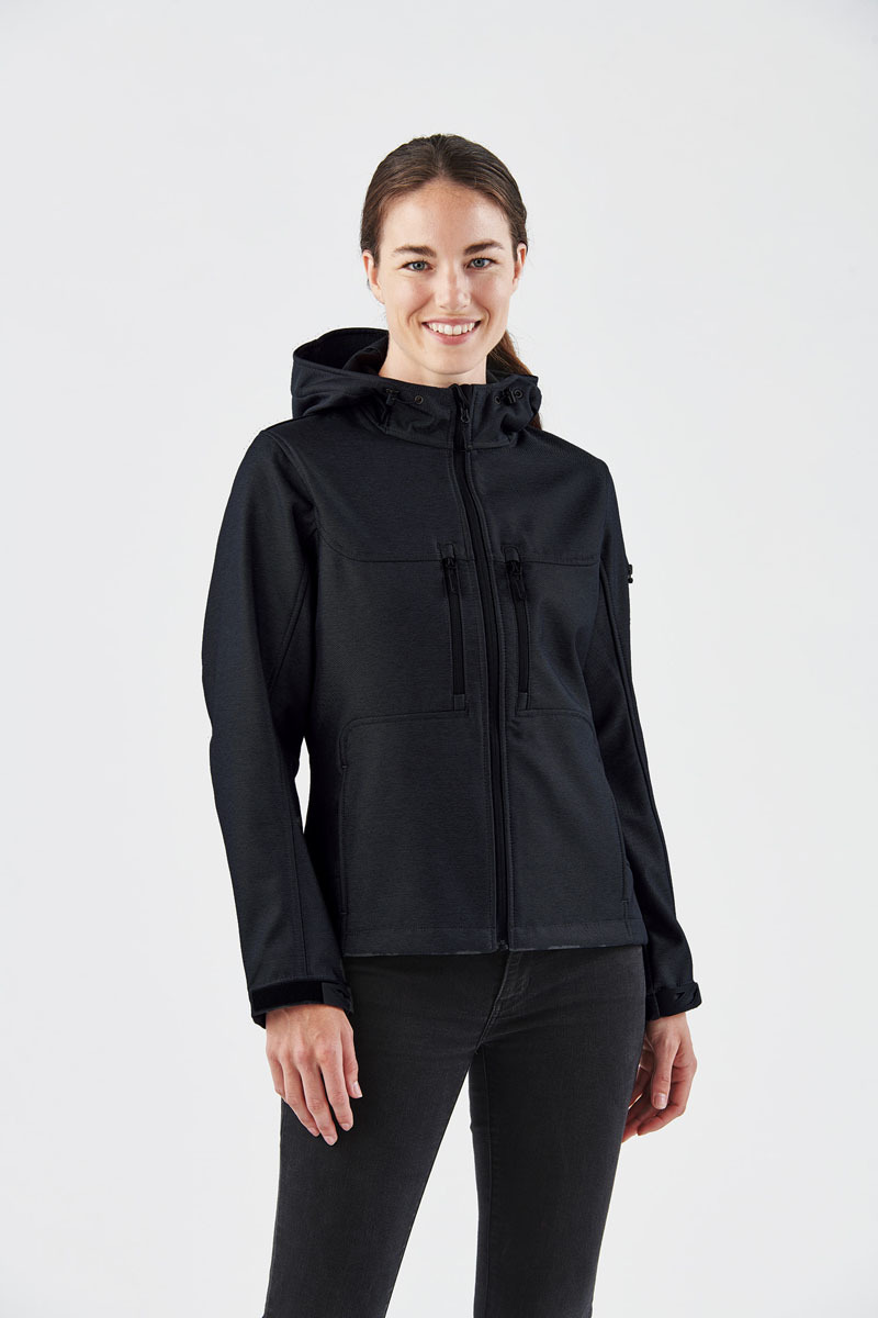Technically Tough. This 3-layer H2XTREME® waterproof/breathable softshell with mechanical stretch features a bonded ripstop outer shell, microfleece lining for added warmth, large kanga style hand warmer pockets, dual chest pockets and an articulated hood to combat inclement weather.