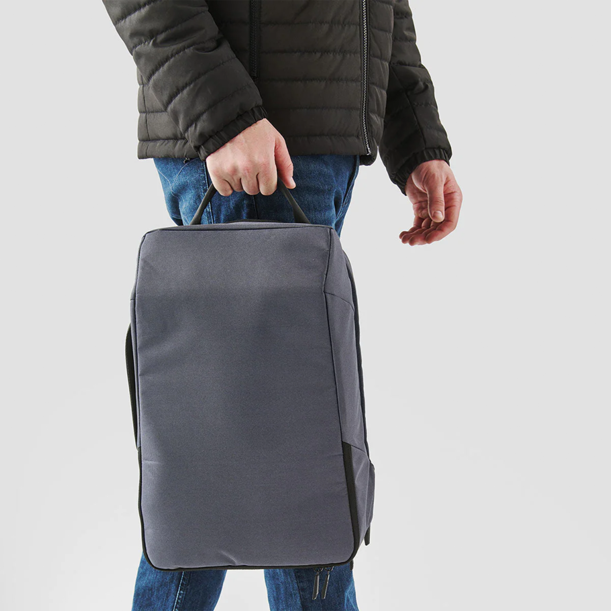 You have success in the bag with the Toluca Backpack. Its intelligent design foresight boasts supreme practicality and functionality. Its carry handle and rolling luggage compatibility make it adaptable from cities to airports. The 15” padded laptop and internal organization system keep your valuables safe, and the padded air mesh back panel and straps promote excellent airflow.
