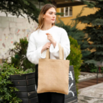 Material: 100% Jute(Burlap) Fabric Size: 15"W x 16"H Imprint Area: 13"W x 14"H Package Quantity: 12 pcs Case Quantity: 96 pcs